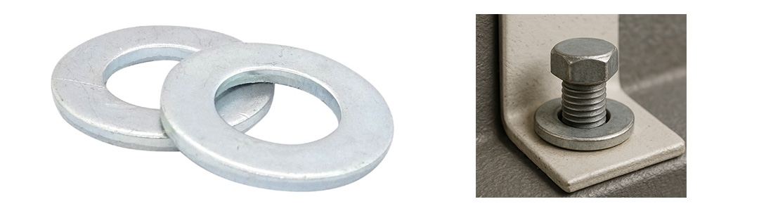 Bevor wir auf die Vorteile von Unterlegscheiben eingehen und bei welchen Anwendungen man sie am besten einsetzt, wollen wir zunächst kurz erklären, was eine Unterlegscheibe eigentlich ist. Unterlegscheiben sind flache, runde Scheiben, die meist aus (verzinktem oder rostfreiem) Stahl gefertigt sind und in der Mitte eine Runde Öffnung haben, durch die der Schaft einer Schraube gesteckt wird. Sie wirken recht simpel im Design, aber lass dich von diesem einfachen Aussehen nicht täuschen. Unterlegscheiben spielen eine wichtige Rolle bei der Realisierung stabiler und langlebiger Konstruktionen.